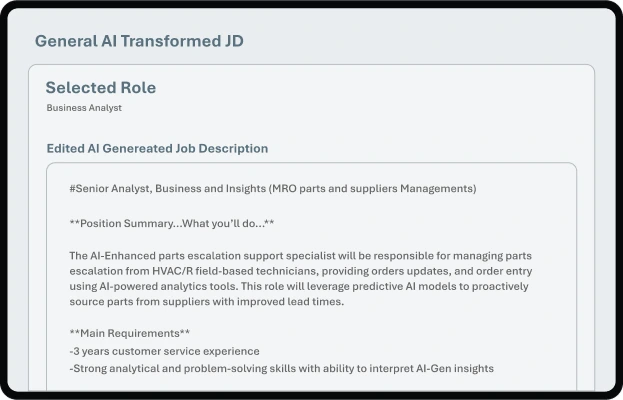 Convert legacy job descriptions into future-ready, AI-enhanced role profiles.