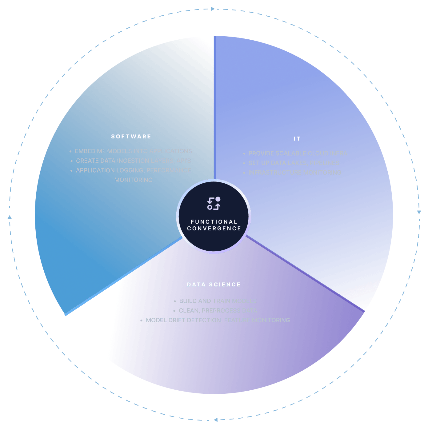 Traditionally separate roles in software, IT, and data science now integrate closely through shared responsibilities. This enables faster innovation, seamless experimentation, and stronger compliance.